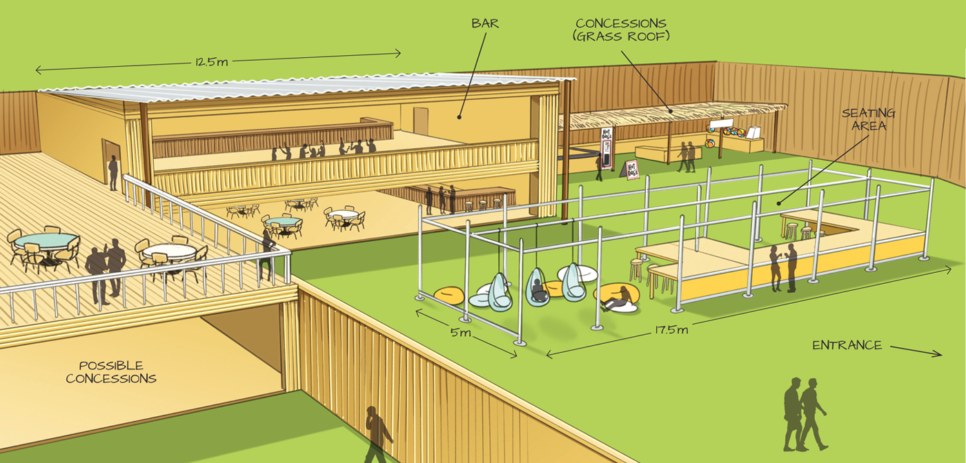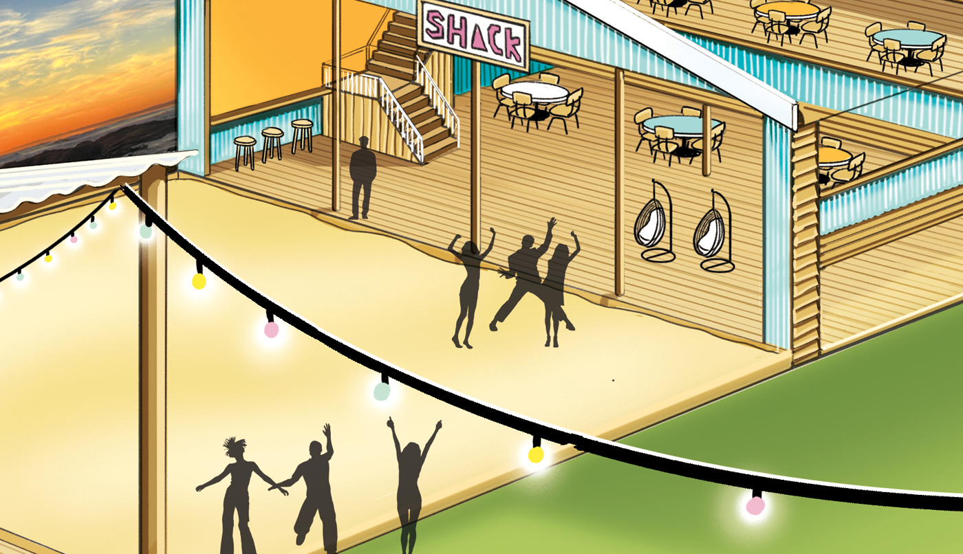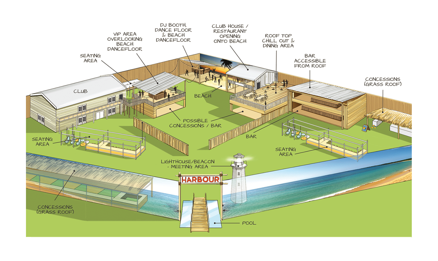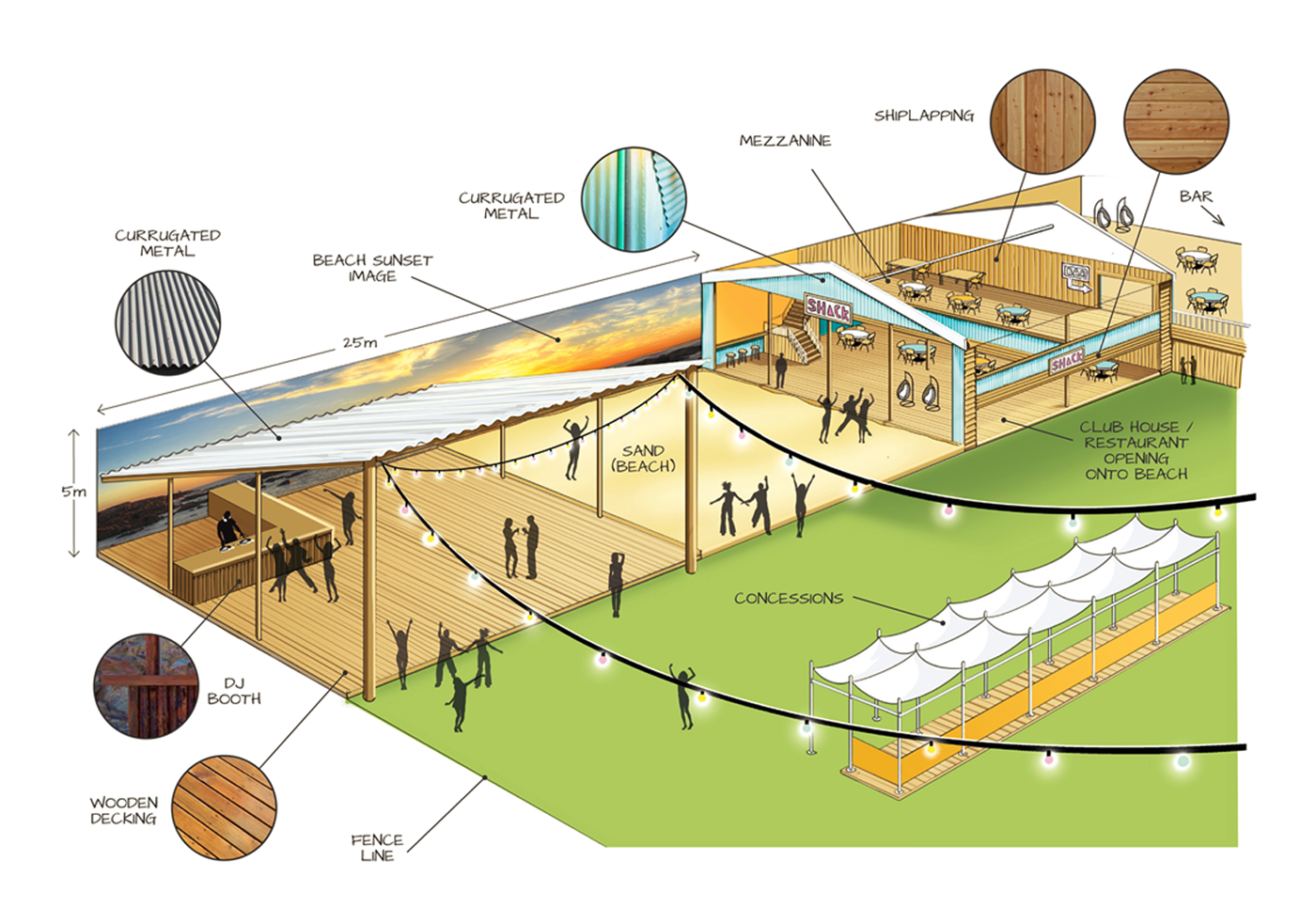 Vantage Event Structures asked me to produce a series of illustrations that they could use to pitch to Creamfields dance music festival 2018. Included in the proposed structures were a replica of the iconic club ‘Nation’ as well as a harbour/beach themed zone and a classic British pub.